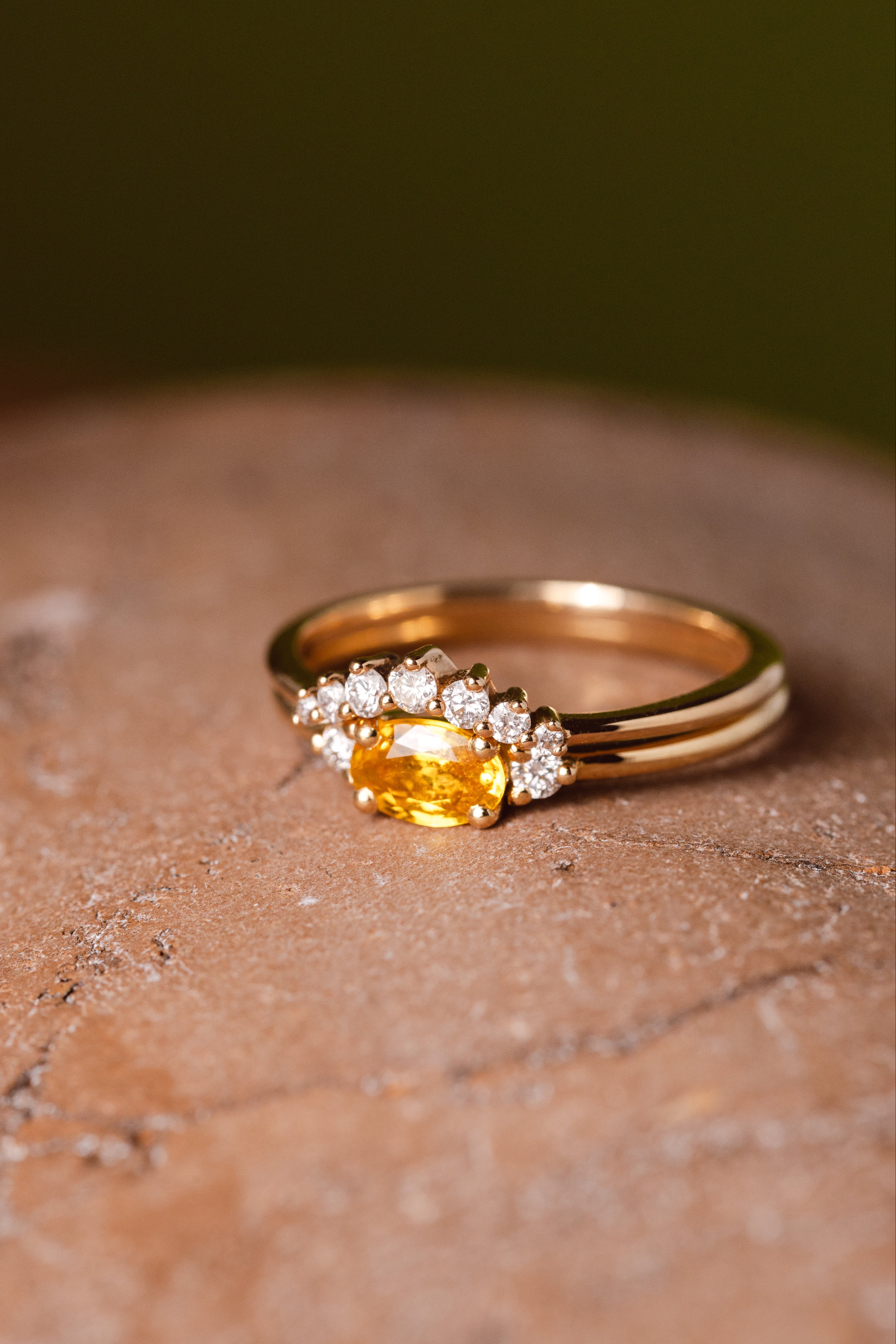 Bague en or 18 carats, saphir jaune et diamants.